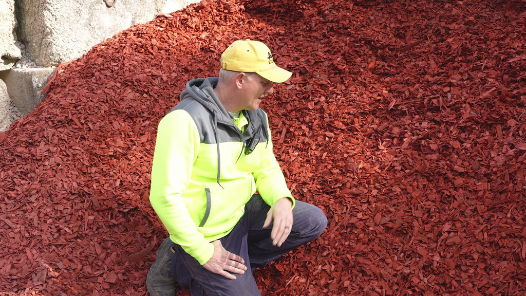 Red dyed hardwood woodchip. Approx 40mm larger hardwood chip that providesa colourful and practical coverage in your garden to reduce weeds, retain moisture and beautify your arden beds.